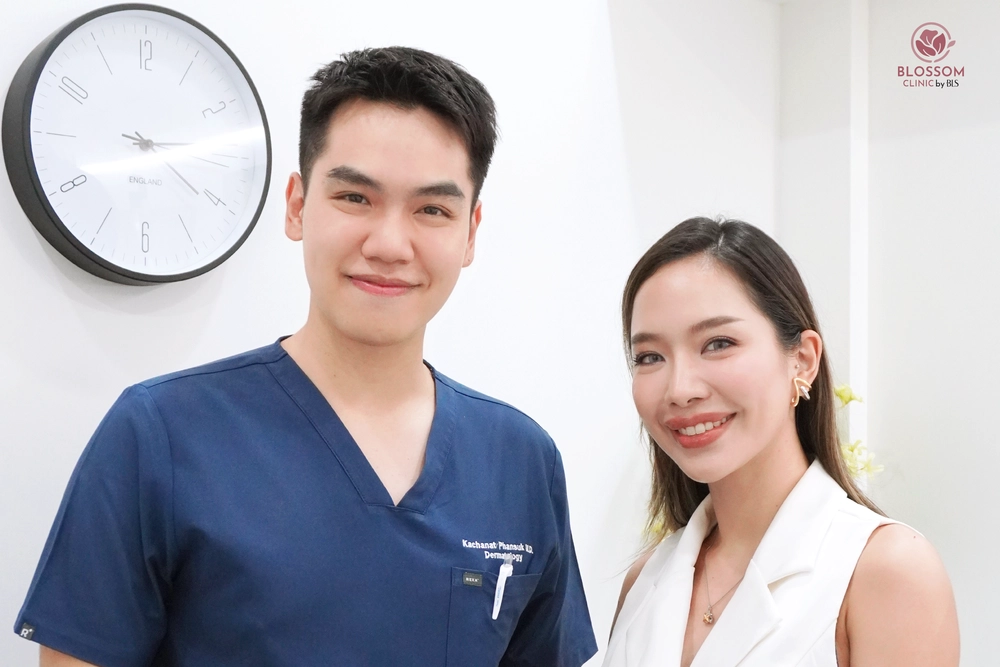หมอบีมเป็นแพทย์ผิวหนังประจำ Blossom Clinic คนไข้หลายคนบอกตรงกันว่า “หมอน่ารัก อารมณ์ดี ใจเย็น รู้สึกประทับใจในความละเอียดเวลาปรึกษา” ถ้าใครอยากเจอคุณหมอใจดี ใส่ใจรายละเอียดทุกขั้นตอน ตั้งแต่การ Consult และวางแผนรักษา ดูแลในทุกช่วงวัย ทุกช่วงเวลาของคนไข้ แบบ Long-term planning เพื่อให้คนไข้ได้รับผลลัพธ์ที่ดีที่สุด หมอบีม คือคำตอบ